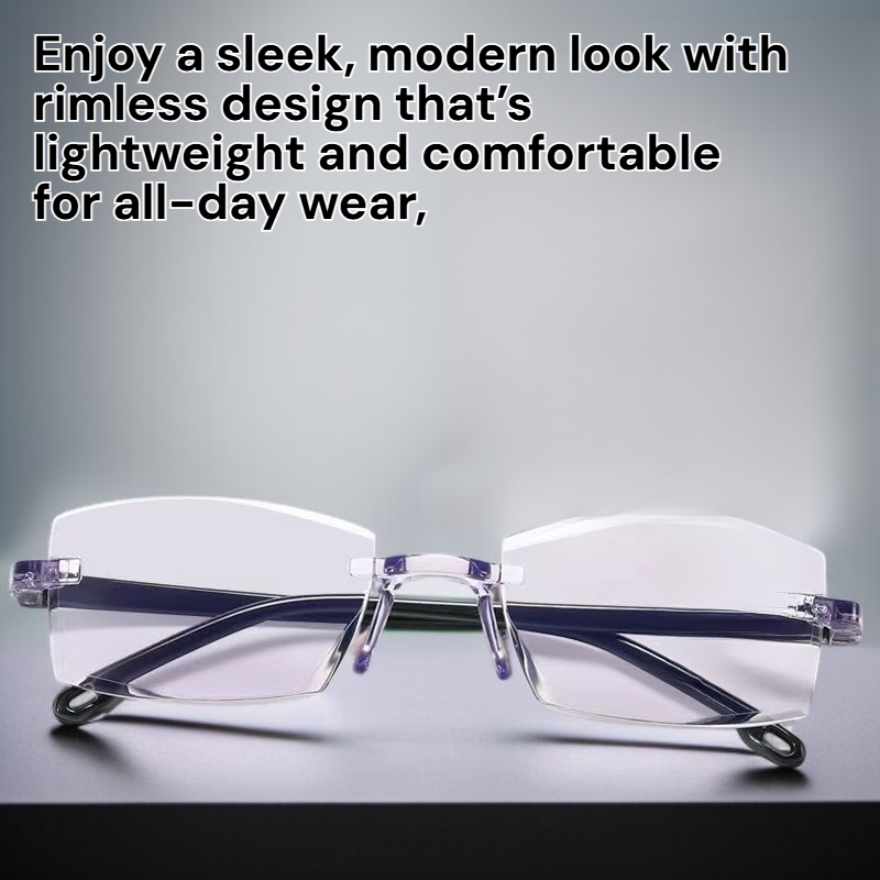 ● Experience effortless reading and clear vision at any distance with auto-zoom technology, eliminating the need to switch between multiple pairs of glasses. ● Enjoy a sleek, modern look with rimless design that’s lightweight and comfortable for all-day wear, perfect for both professional and casual settings. ● Protect your eyes from harmful blue light emitted by screens, reducing eye strain and fatigue during extended computer or smartphone use. ● Durable, scratch-resistant lenses ensure long-lasting clarity and reliable performance, making these glasses a smart investment for your eye health. ● Adjustable fit and universal style make these presbyopia glasses suitable for men and women, providing a personalized and fashionable solution for aging eyes.